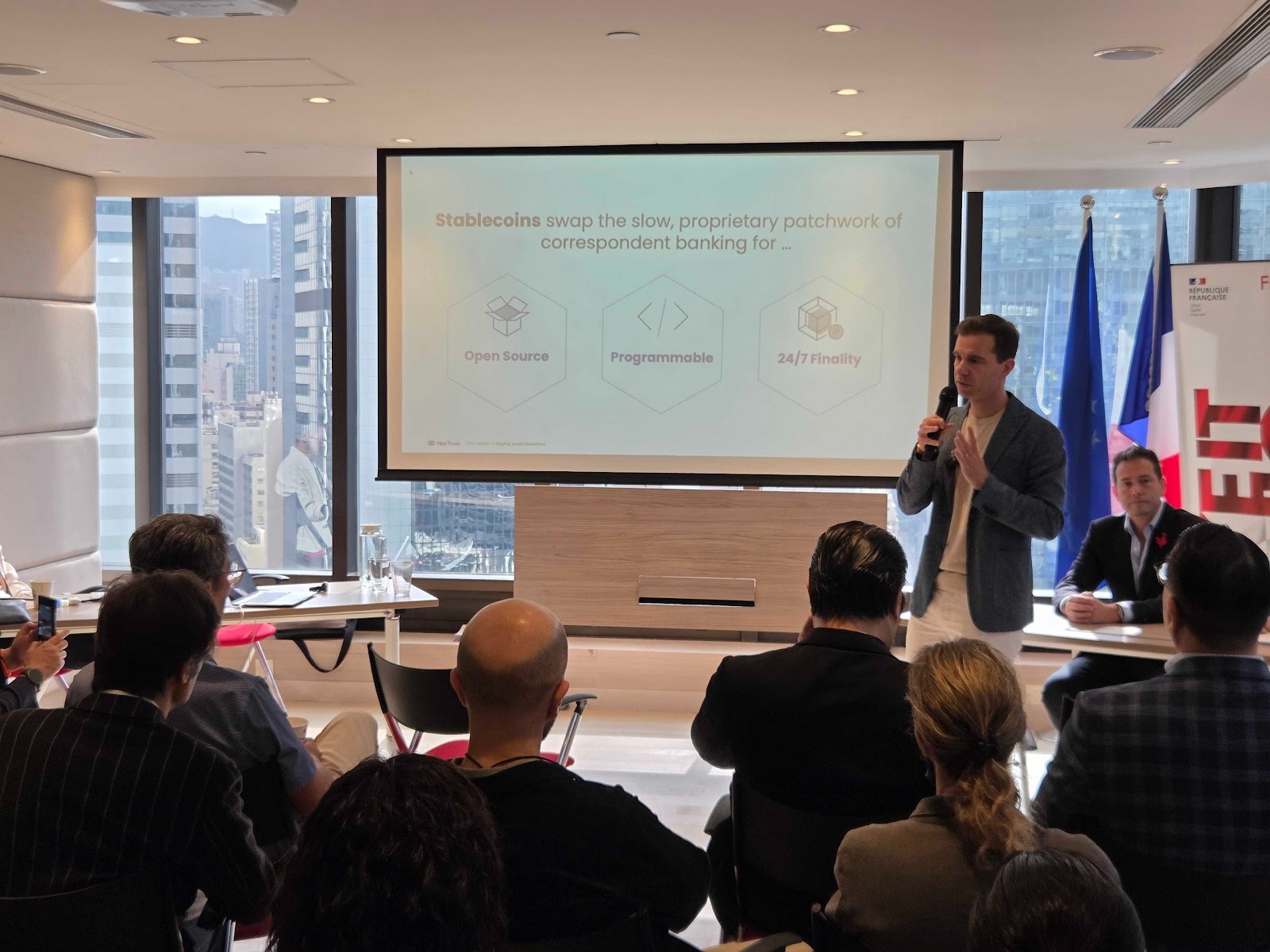 Our CEO, Alessio Quaglini, delivered a keynote at the La French Tech Breakfast Event, asserting that the speed of value movement is the new institutional imperative. He firmly declared that stablecoins define the new standard, challenging legacy payments with a volume that achieved in under six years what took Visa approximately five decades. Alessio confirmed this seismic shift transforms correspondent banking into an open-source, programmable, 24/7 infrastructure with instant finality. Hex Trust is architecting the regulatory and security framework required to govern this adoption for institutions.